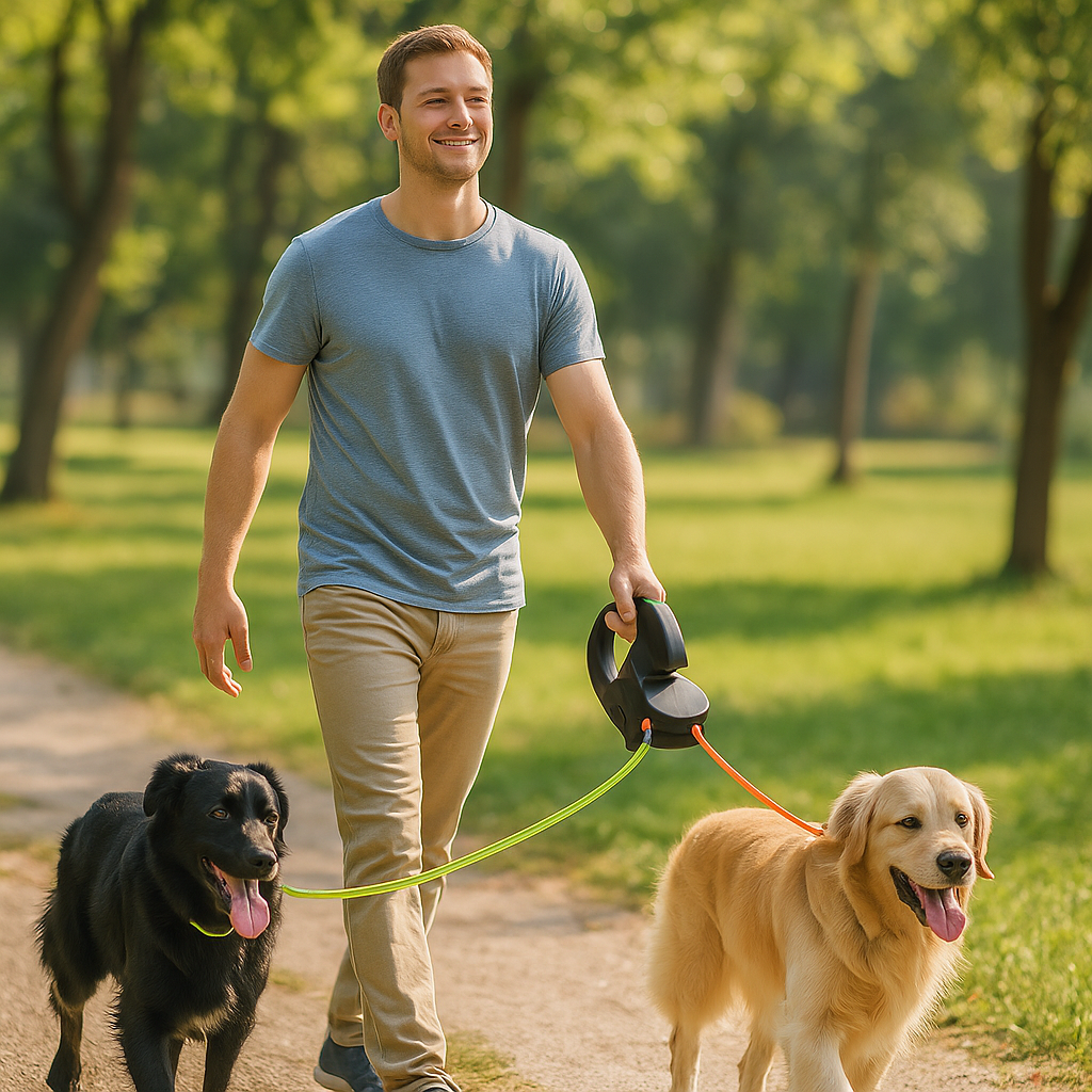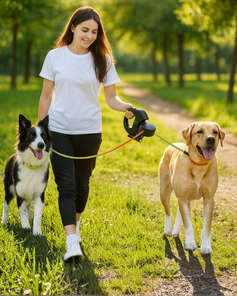 The Dogleash Double is designed for pet lovers who enjoy walking their dogs together without the hassle of tangled leashes. Crafted from durable, tangle-free materials with comfortable ergonomic grips, it ensures effortless control and balance during every walk. Whether you're strolling through the park or exploring the city, the Dogleash Double keeps your furry friends close, safe, and perfectly in sync turning every walk into a moment of ease and joy.