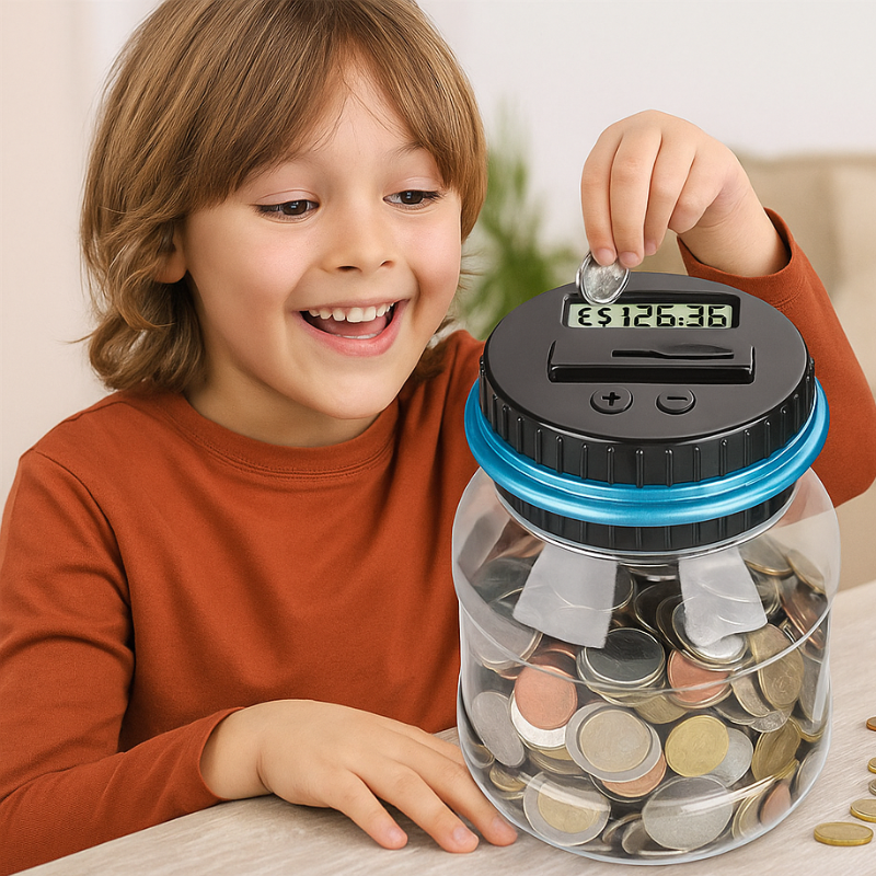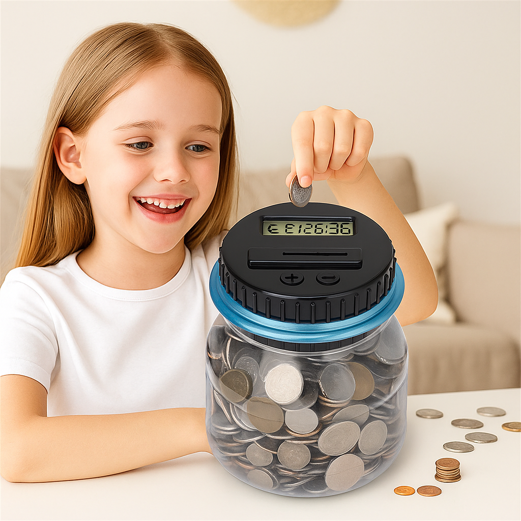 The Piggy Bank Digital transforms traditional saving into a fun, educational, and modern experience. Designed with a sleek digital display, it helps children and adults track their savings effortlessly while building smart money habits. Perfect for teaching the value of saving in a tech-friendly way, this digital piggy bank makes every coin count literally.